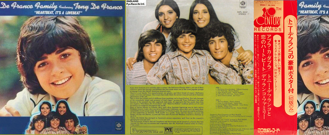 The DeFranco Family’s music can be found today on iTunes. Their single records, “Hearbeat It’s a Lovebeat”, “Abra-Ca-Dabra”, and “Save the Last Dance For Me” all made the Billboard charts in the U.S. Heartbeat It’s a Lovebeat” went gold and platinum. There were also many popular international releases of the DeFranco’s music by 20th Century in Japan and by Philips in Europe. The DeFranco Family’s pictures appeared in pop music magazines not only in North America, but in England, Germany, Sweden, Japan, and Thailand.